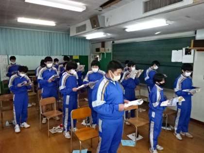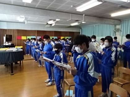 2年1組、音楽。「サンタ ルチア(Santa Lucia)」をイタリア語で歌っています!