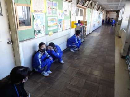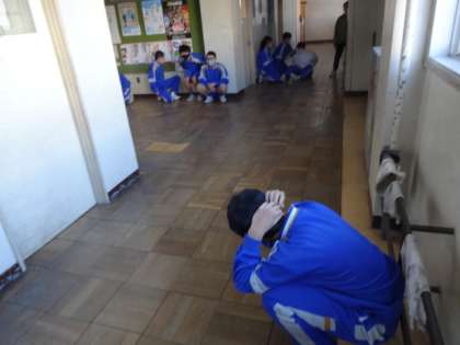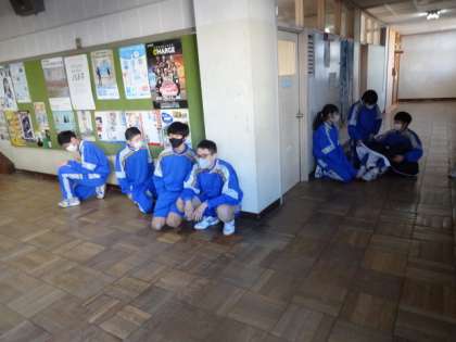 昼休みに、事前連絡なしで避難訓練を行いました。自分の身を守ることができましたか。
