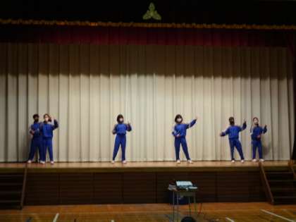 1年4・5組、体育女子。ダンスの中間発表。本番は来週の金曜日の予定です。
