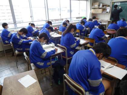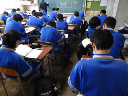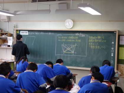 2年1組、数学。「底辺が共通な三角形について調べる」