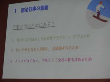 移動教室のまとめです。スキー移動教室は中止になりましたが、今まで頑張って準備してきたことを、今後に生かしていきましょう。実行委員のみなさん、ご苦労様でした。