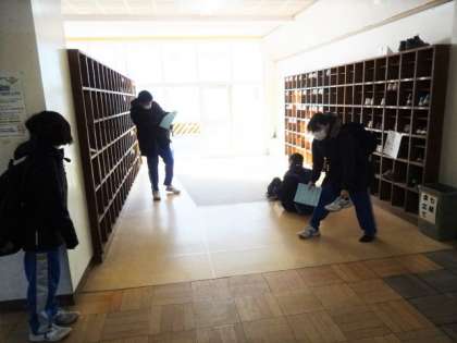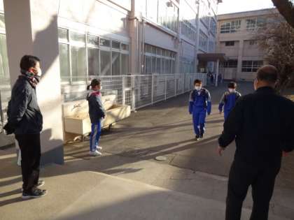 今日の日中は気温が上がる予報です。朝は寒い!生徒会役員が、ノーチャイムデーの呼びかけをしています。