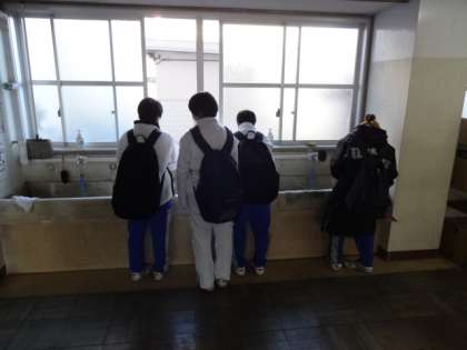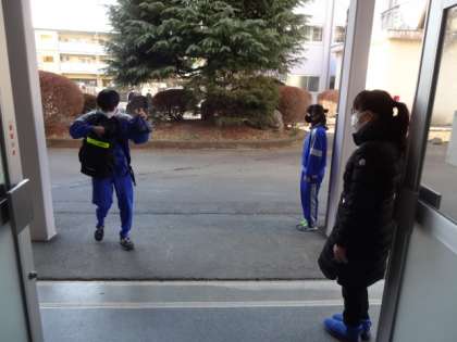 今日の日中は気温が上がる予報です。朝は寒い!生徒会役員が、ノーチャイムデーの呼びかけをしています。