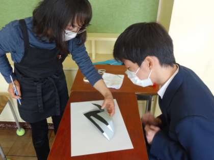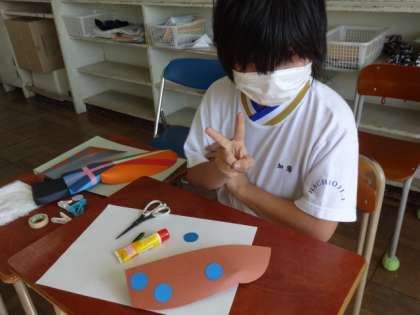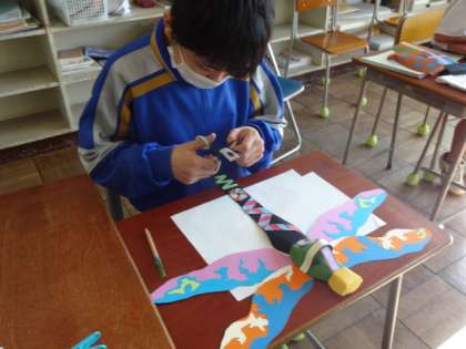 7組、美術。昆虫の紙工作。完成に近づいてきています。