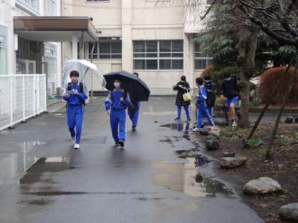 今朝は雨が降っていましたが、登校時間には止んでいました。