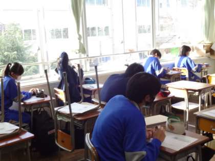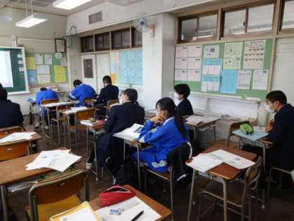 1時間目の3年2組、数学。今日は都立高校推薦入試の発表日。登校している生徒が少ないです。