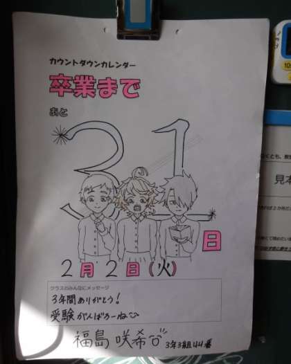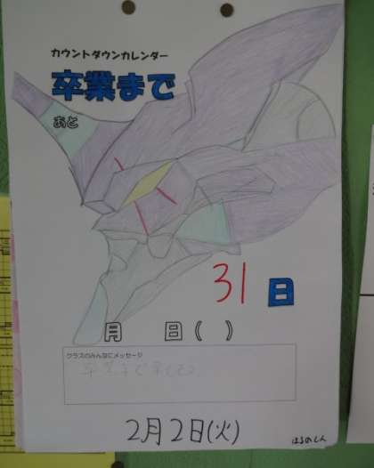 3年生の教室の「カウントダウンカレンダー 卒業まであと31日」
