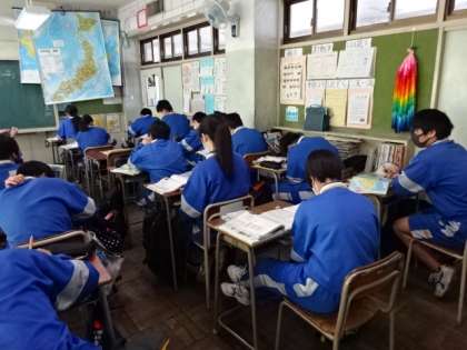 2年1組、社会。「資源輸入大国 日本」「日本の電力をめぐる問題」