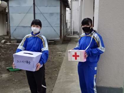 今朝は曇り空でした。この後天気は回復してくるそうですが、寒い一日です。生徒会本部のユニセフ募金が始まりました(8日〜10日)。