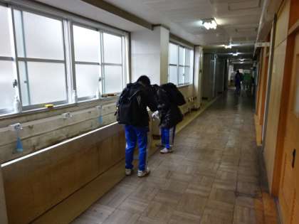 今朝は曇り空でした。この後天気は回復してくるそうですが、寒い一日です。生徒会本部のユニセフ募金が始まりました(8日〜10日)。