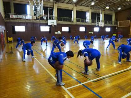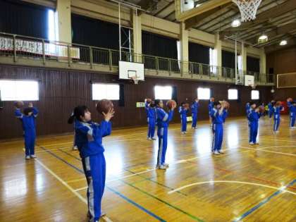 2年1・2組、体育女子。バスケットボール。