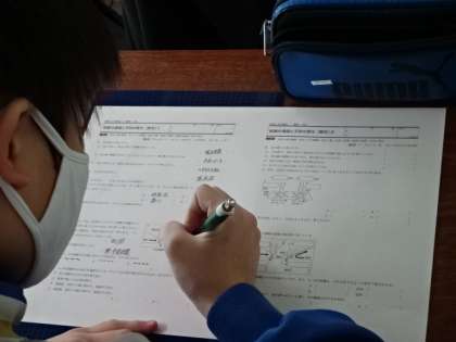 2年4組、理科。天気の変化の練習問題。