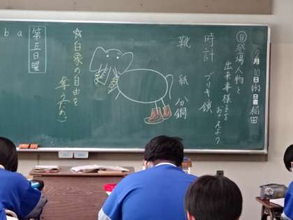 1年2組、国語。「オツベルと象」