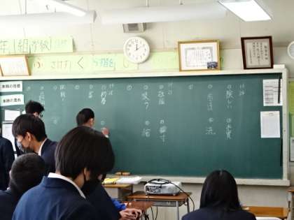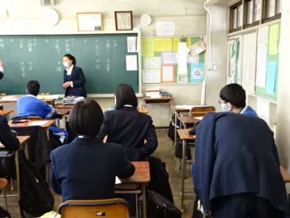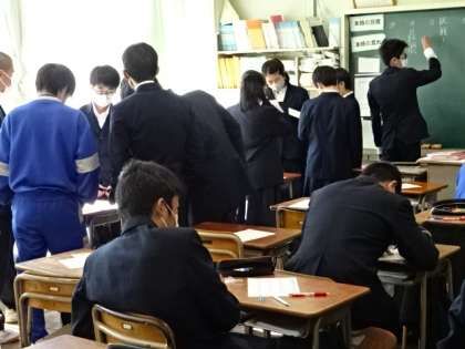 3年1組、国語。今日は私立高校の一般入試日なので、生徒が少ないですね。