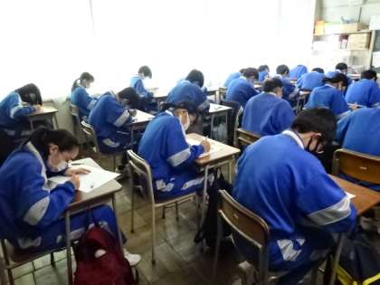 2年3組、数学。単元テスト中。