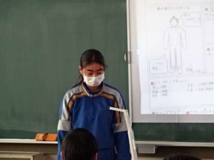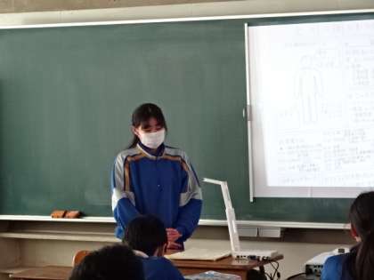 1年生が、昨日の6時間目に「職業調べ」の個人発表を行いました。1組。