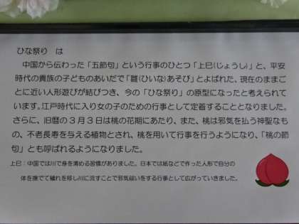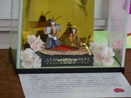 中央校舎2階におひな様が飾ってあります。3月3日はひな祭り。