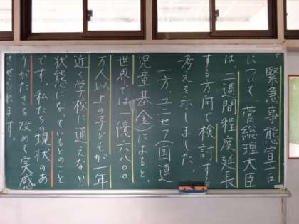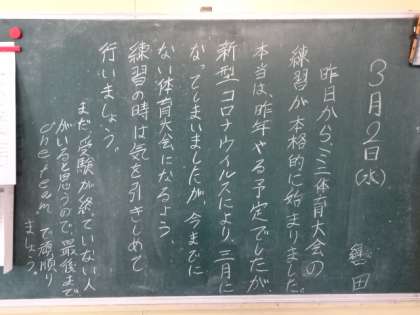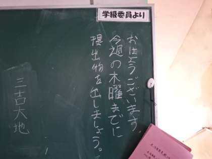 学年掲示板。ミニ体育大会(3年)。提出物を(1年)。現状のありがたさ(2年)。