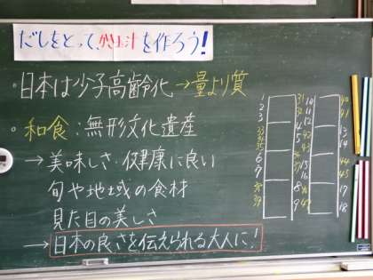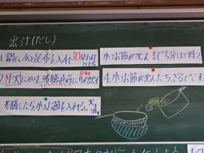 3年3組、家庭科。調理実習。卒業記念!!日本クオリティを伝えよう。だしをとってかき玉汁を作ろう!
