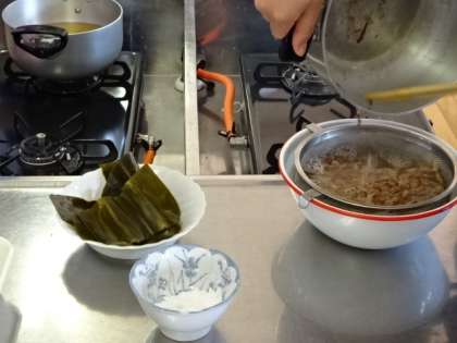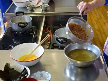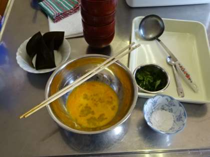 3年3組、家庭科。調理実習。卒業記念!!日本クオリティを伝えよう。だしをとってかき玉汁を作ろう!