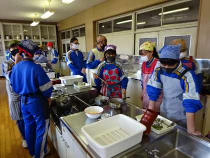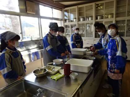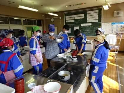 3年3組、家庭科。調理実習。卒業記念!!日本クオリティを伝えよう。だしをとってかき玉汁を作ろう!