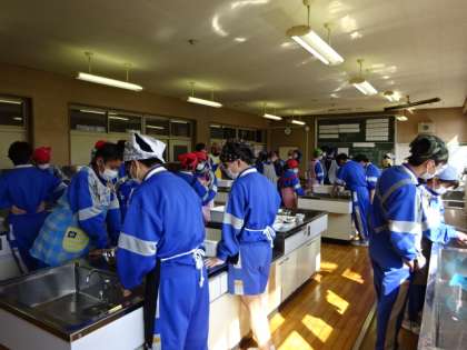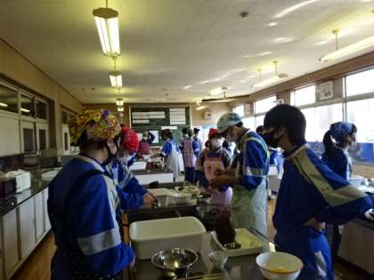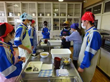 3年3組、家庭科。調理実習。卒業記念!!日本クオリティを伝えよう。だしをとってかき玉汁を作ろう!