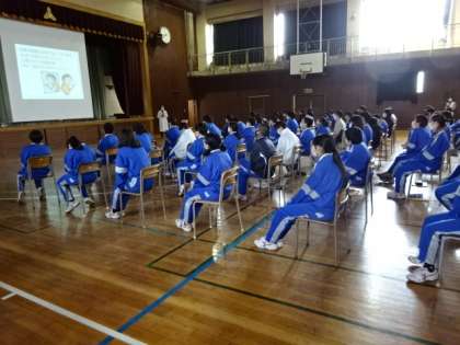 1年生が6時間目に「喫煙防止教室」を受けました。講師は本校の学校薬剤師の先生です。