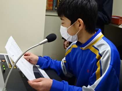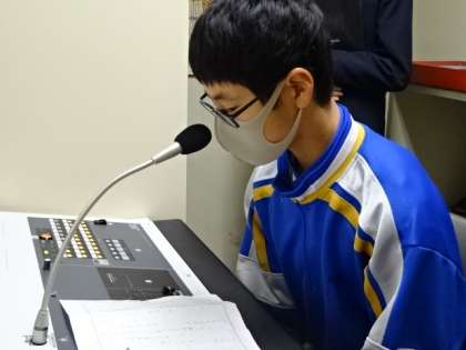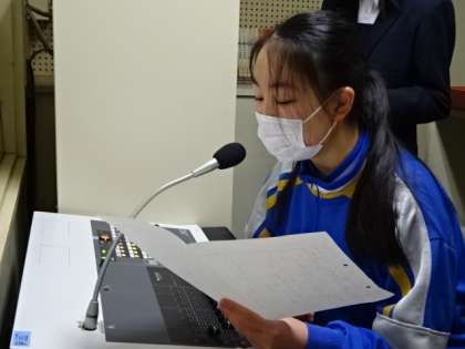 3月の生徒会朝礼。後期の活動の反省を専門委員長が発表しました。