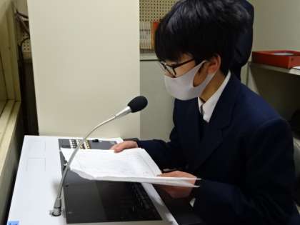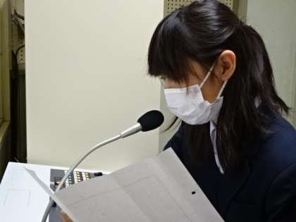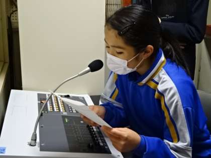 3月の生徒会朝礼。後期の活動の反省を専門委員長が発表しました。