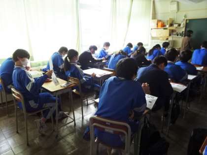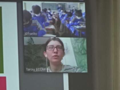 今日は、2年生が総合的な学習の時間で「国際理解」。オンラインで在日外国人の方と話をしました。1組はロシアの方。