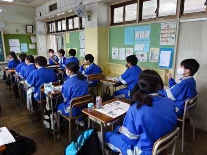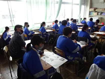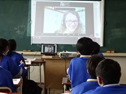 今日は、2年生が総合的な学習の時間で「国際理解」。オンラインで在日外国人の方と話をしました。4組はカナダの方。