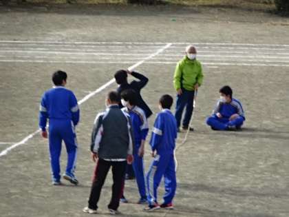 6時間目、3年ミニ体育大会の予行練習。大縄跳びです。
