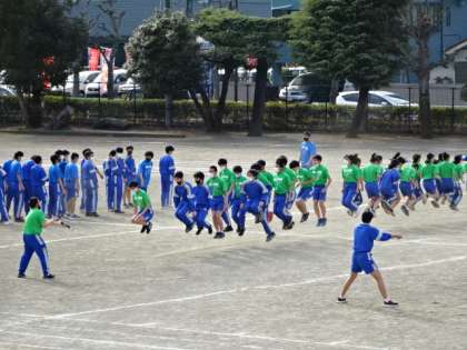 6時間目、3年ミニ体育大会の予行練習。大縄跳びです。