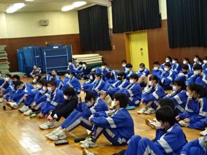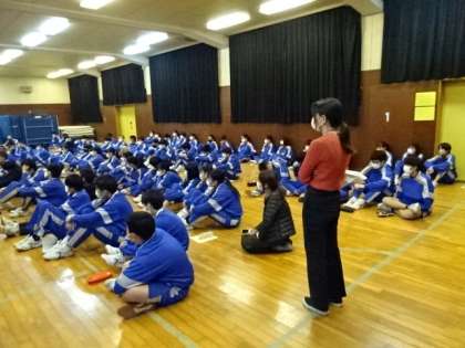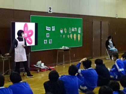 3年生の赤ちゃんふれあい授業の様子です。八南助産師会の方が講師です。