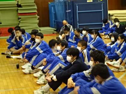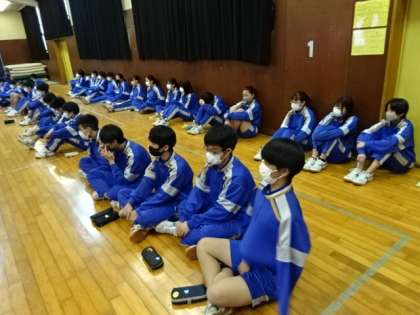 3年生の赤ちゃんふれあい授業の様子です。八南助産師会の方が講師です。