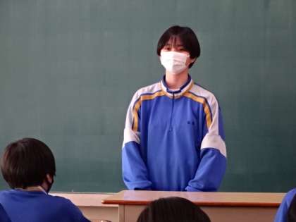 2年1組、国語。「走れメロス」の登場人物になって、感想を発表しています。