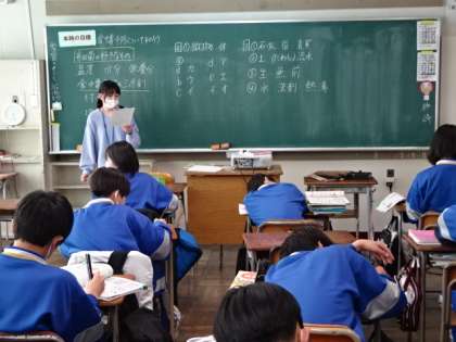 1年1組、家庭科。「食中毒について知ろう」