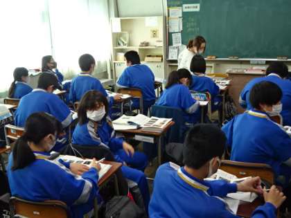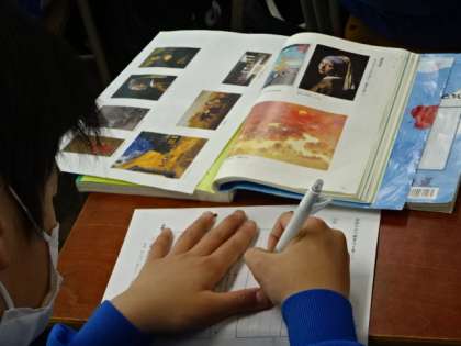 1年2組、国語。「芸術作品の鑑賞文を書く」