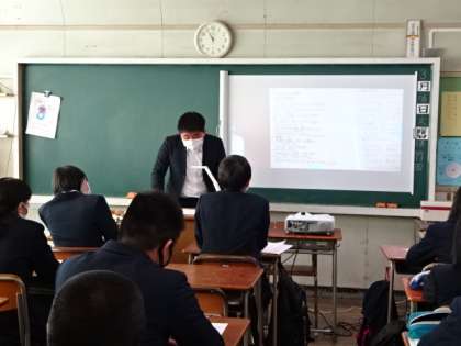 3年生が個人の卒業研究で調べたことを、クラスで発表しています。