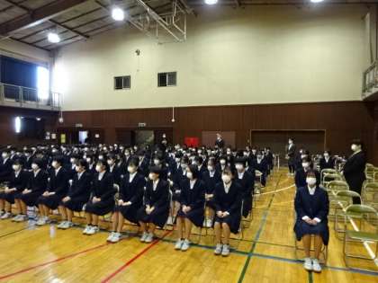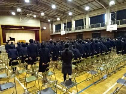 今日の卒業式予行の様子です。感染症対策のため、2年生は本番に参加できないので、今日の予行に参加しました。