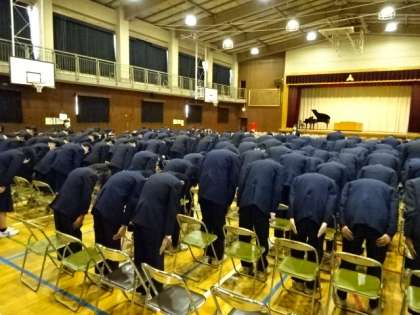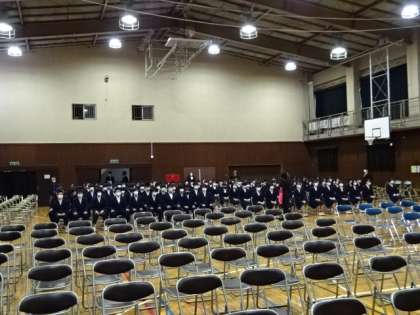 今日の卒業式予行の様子です。感染症対策のため、2年生は本番に参加できないので、今日の予行に参加しました。