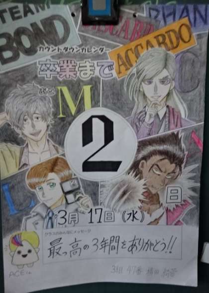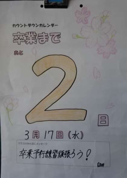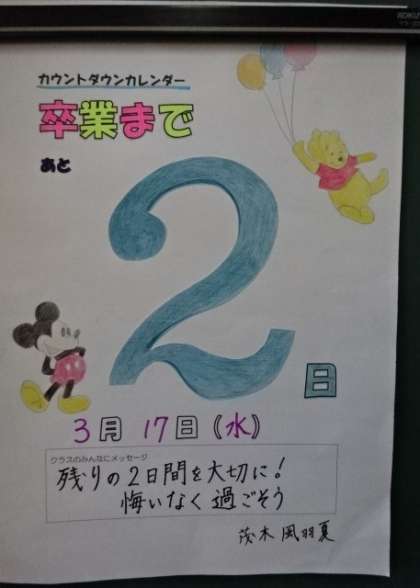 カウントダウンカレンダー。卒業まであと2日。