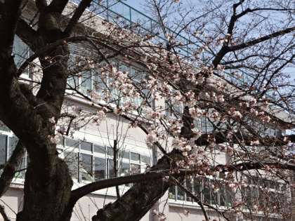 今朝気が付きました。学校の桜が咲き始めました。