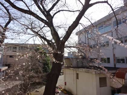 今朝気が付きました。学校の桜が咲き始めました。