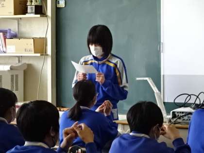2年2組、理科。自由研究の発表です。