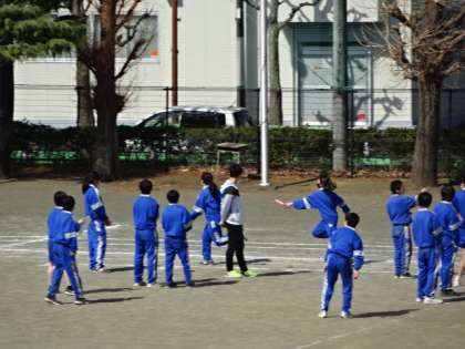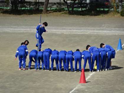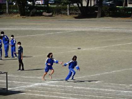 1年4・5組、体育。ミニ体育大会の練習です。1年生のミニ体育大会は24日(水)です。