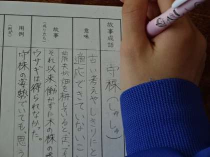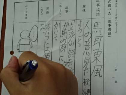 1年1組、国語。「様々な故事成語を知ろう」
