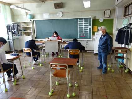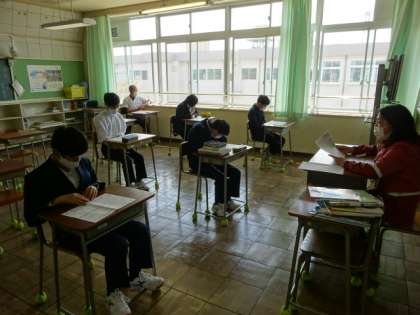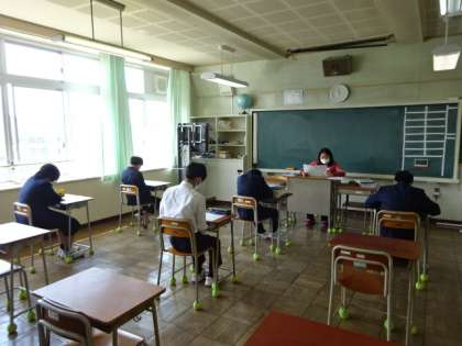 どのクラスも学級活動。自己紹介をしたり委員会を決めたり係を決めたり。教科の授業はまだ始まっていません。7組。