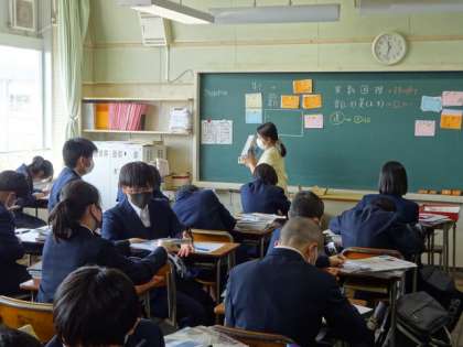 どのクラスも学級活動。自己紹介をしたり委員会を決めたり係を決めたり。教科の授業はまだ始まっていません。2年2組。