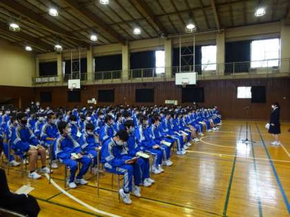 1年生に向けた一中ガイダンスです。生徒会や委員会の紹介。